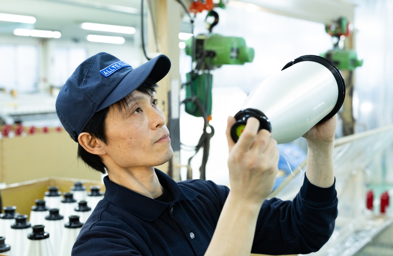 以前、ガラス繊維の商社に勤務していた時に転職を考え、アルテクロスへの入社を決めました。入社当時は、製造課で約2年間モノづくりの現場を経験しました。前職の経験から、ガラス繊維などについての知識は持っていましたが、初めて学ぶことが多く、驚きと発見の連続でした。